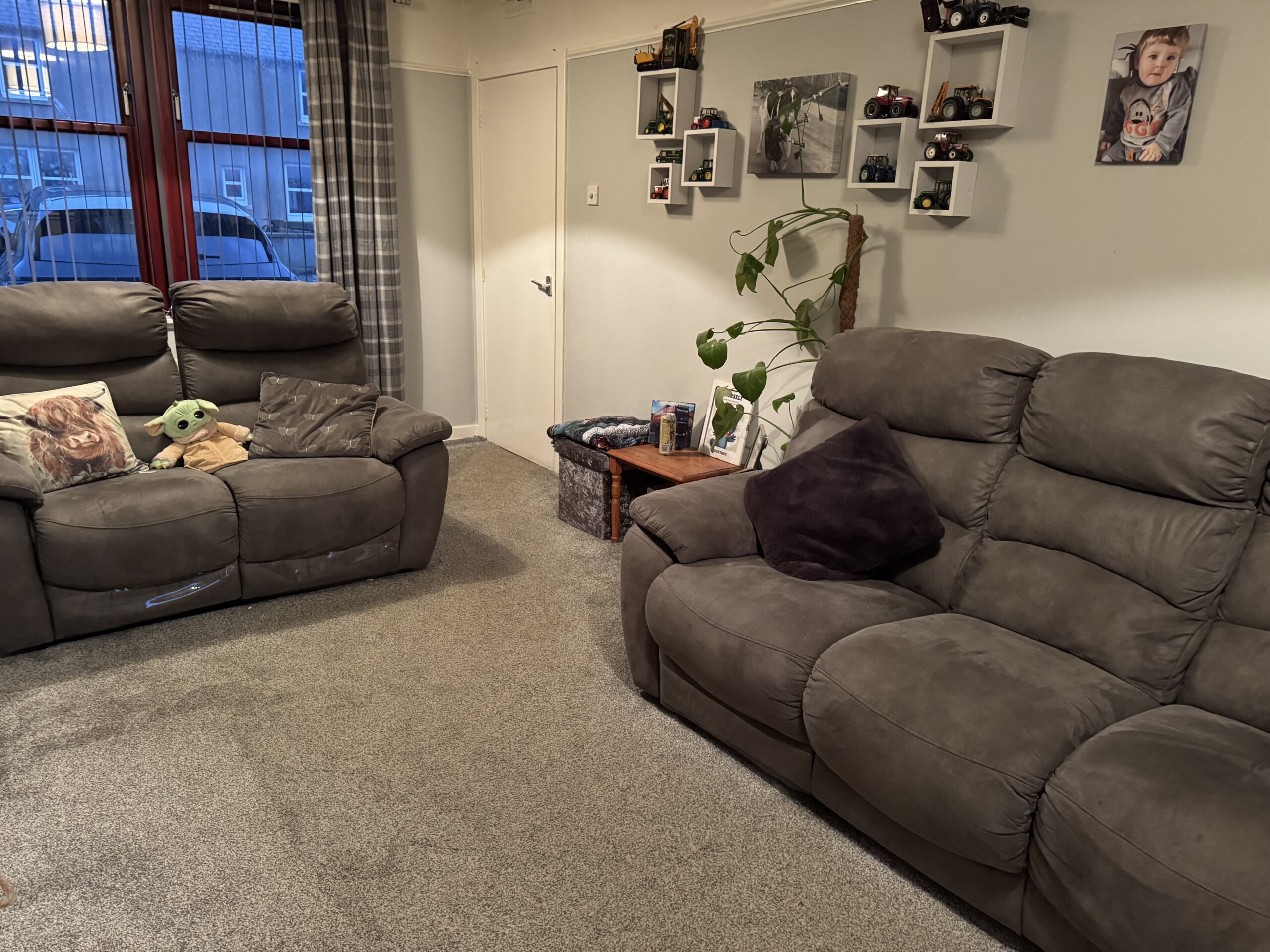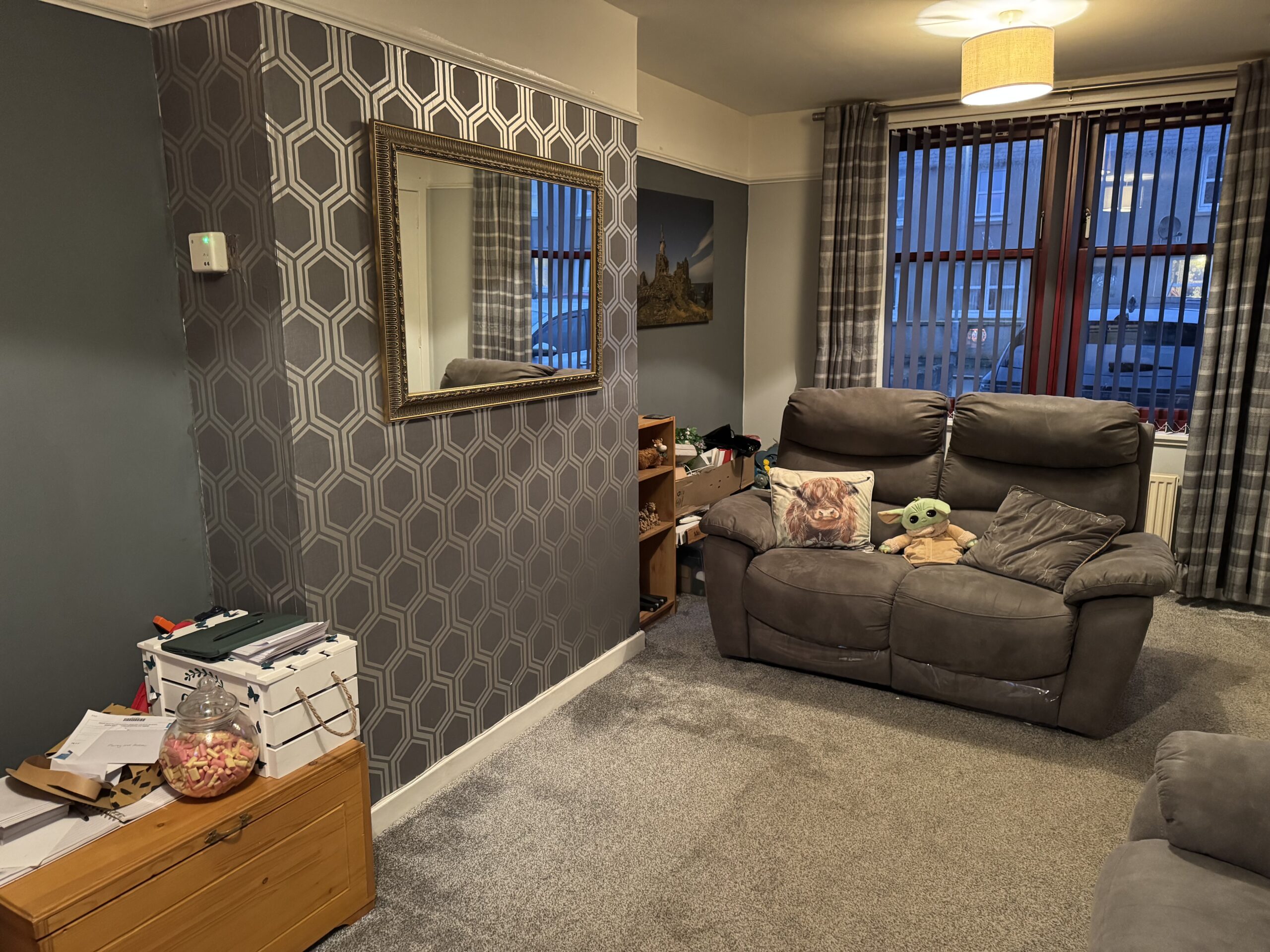 A mid-terraced and well-proportioned three-bedroom family home with garden to rear and offroad parking to the front for two vehicles. It benefits from having an oil-fired central heating system – the oil tank was filled just a month ago. Accommodation comprises hallway, large lounge, large kitchen/diner and rear vestibule on the ground floor, upstairs on the landing there are three bedrooms and a family bathroom. This property also benefits from having lots of storage peppered throughout. There is also a fully floored attic which has light fitted to it and access from a pull-down ladder. Outside to the rear there is a fenced, paved and concreted area which leads into a fenced lawned area. There is a side access into the rear for bins and to the front there is offroad parking for two vehicles and a motorbike could also be accommodated within the available space, if required by the new owner. Early viewing is recommended.