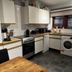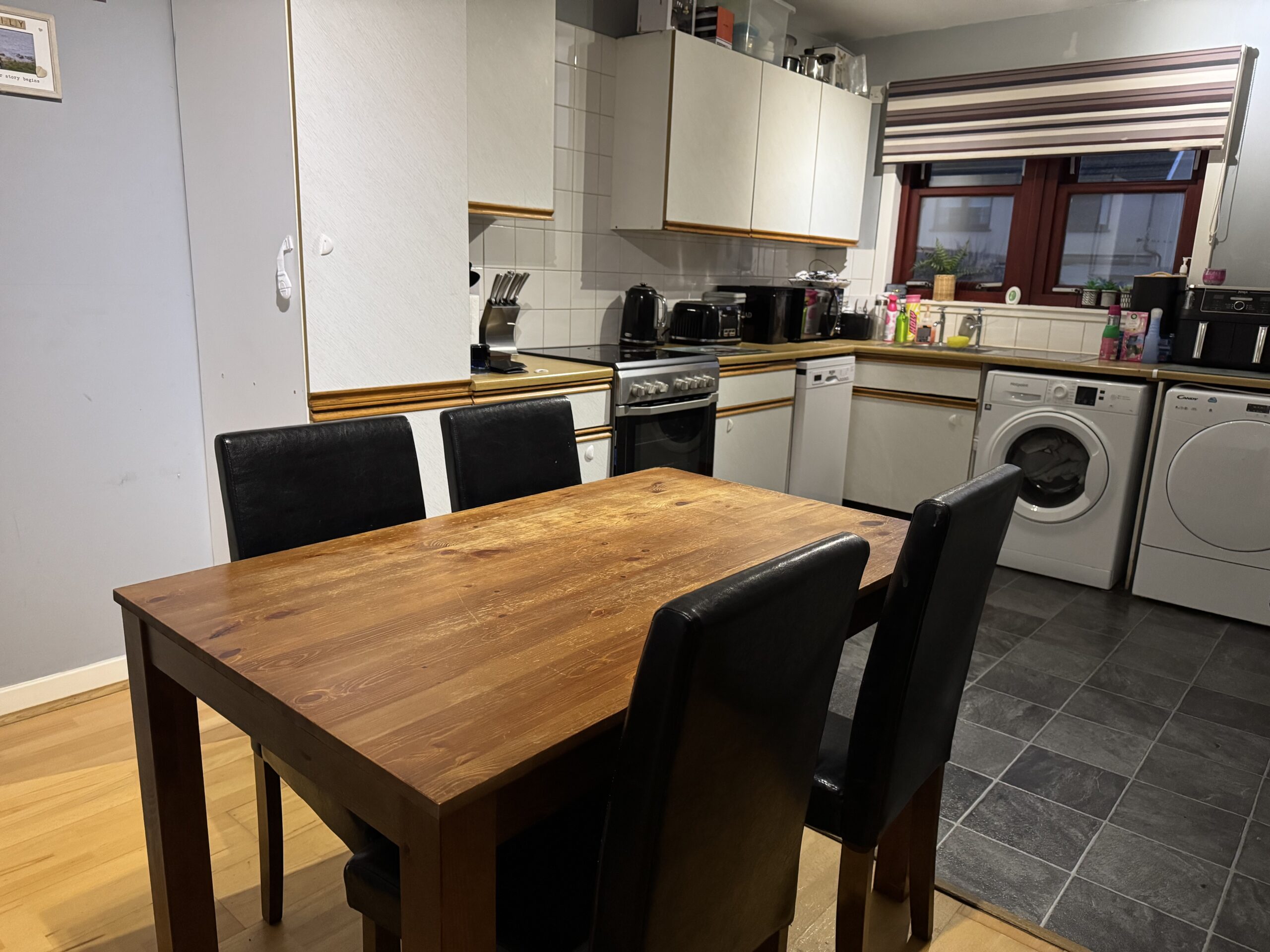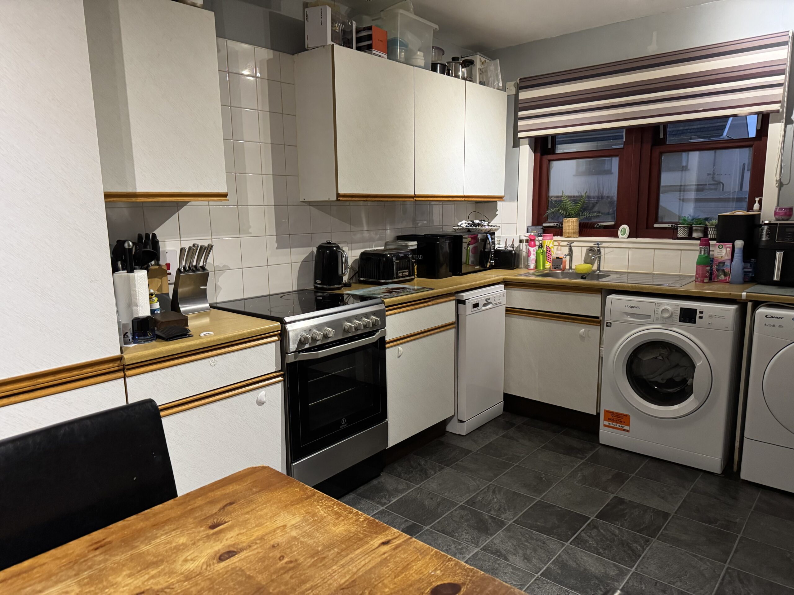 This lovely large room has fitted wall and base units with tiled splashback. There is a stainless steel sink with drainer. There is a deep built-in shelved pantry cupboard. A window faces to the rear and there is a radiator to the wall. The electric cooker has an extractor fan fitted above and is included in the sale along with the fridge/freezer, tumble drier and dishwasher. The flooring is laid to vinyl in the kitchen area where a glazed door leads into the rear vestibule. There is laminate flooring to the dining area.