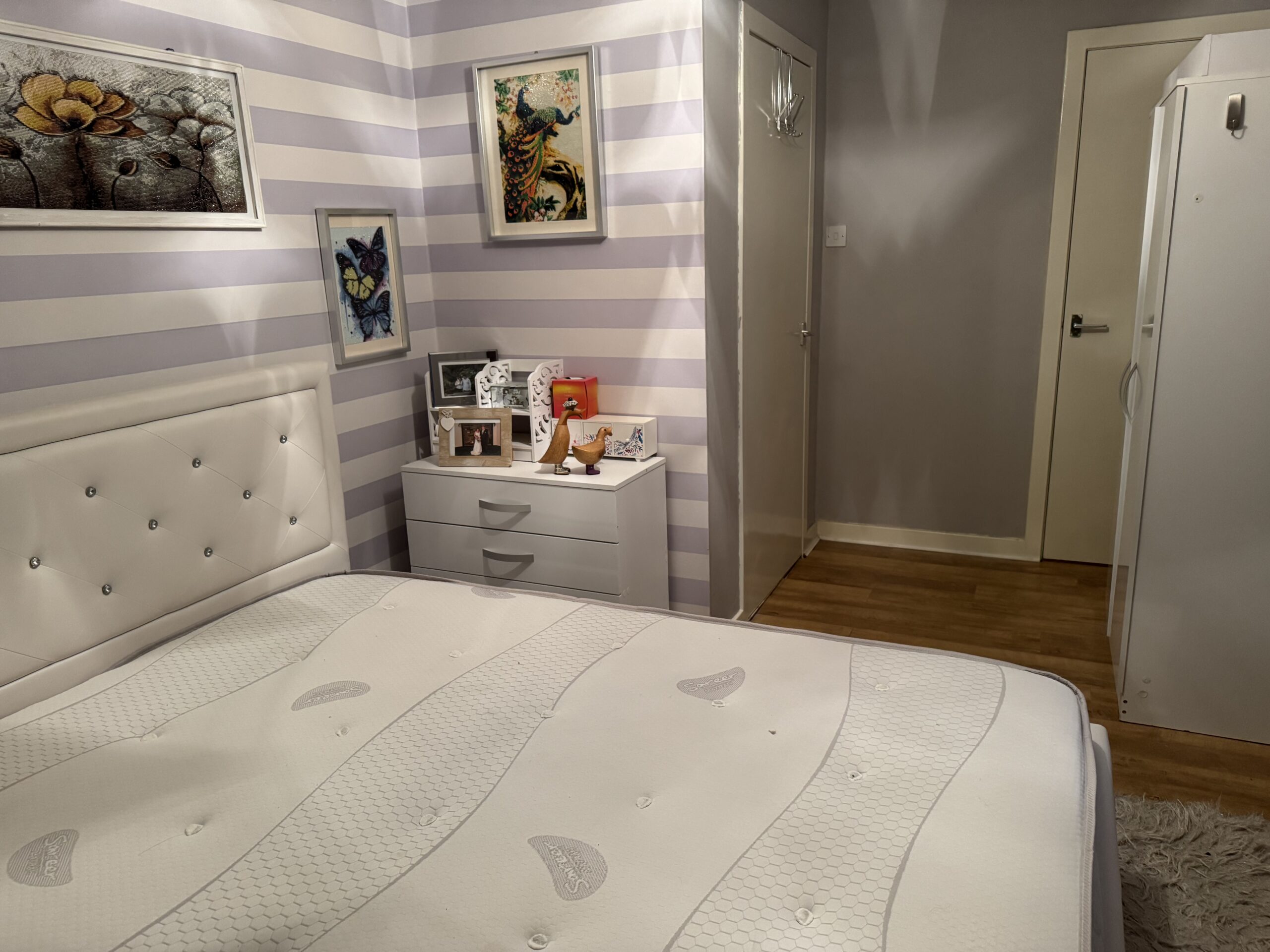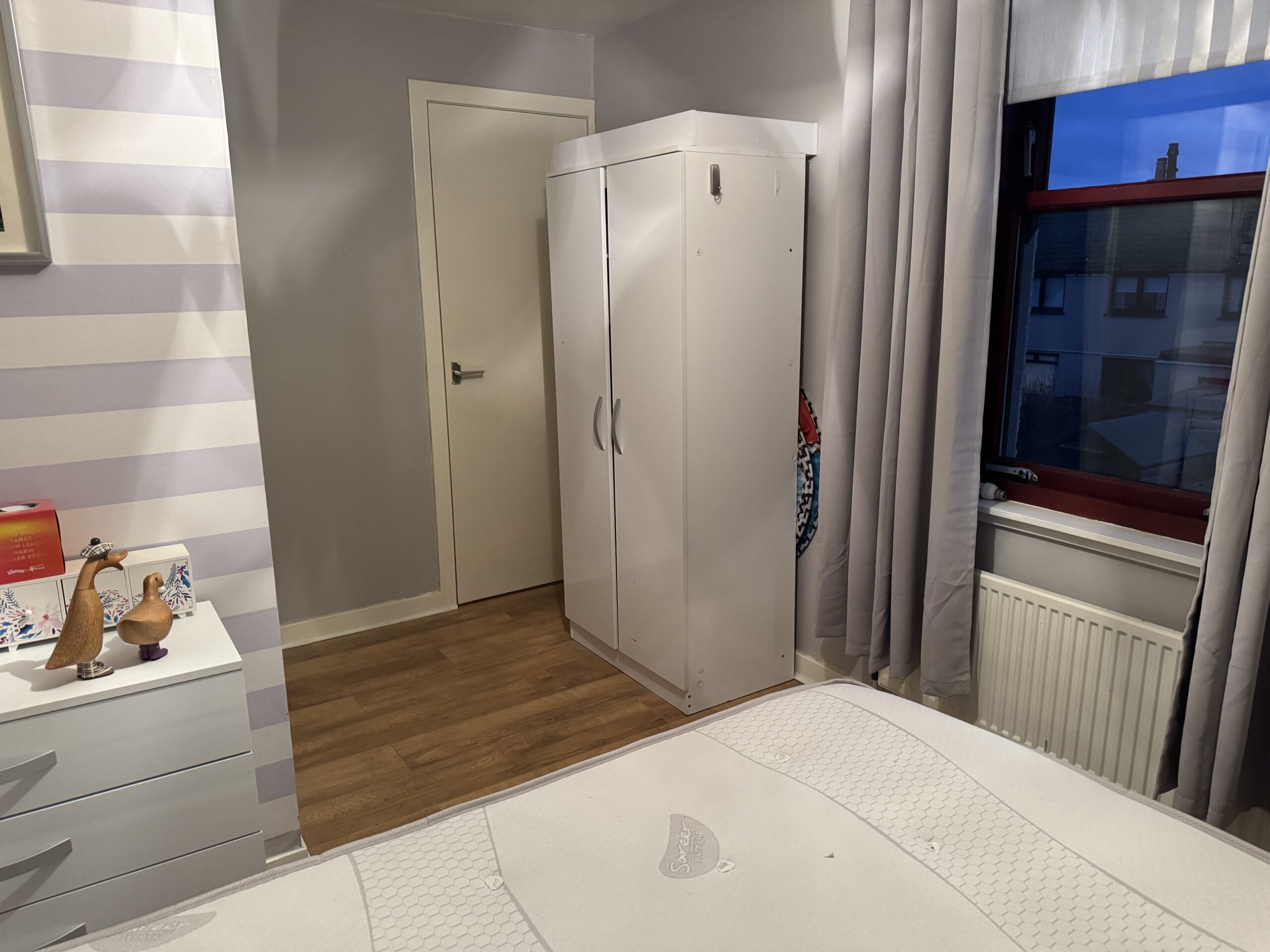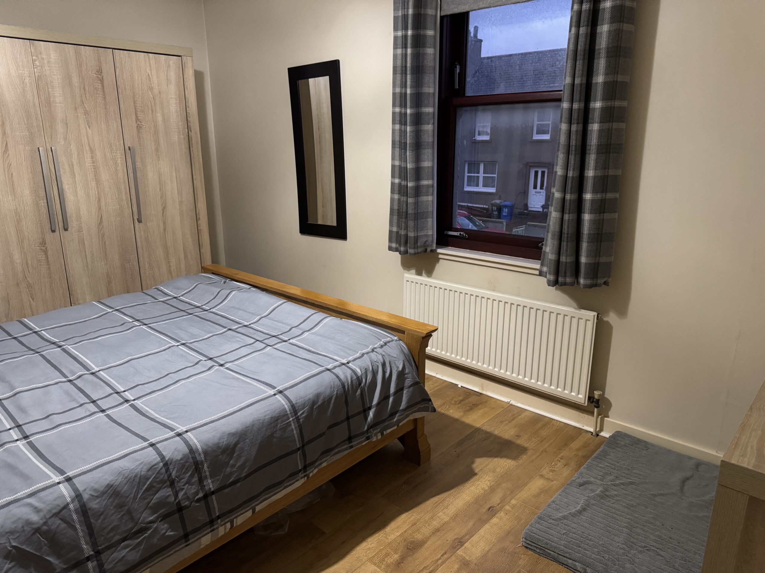 This lovely bright room has a built-in wardrobe and a built-in shelved cupboard which also houses the water tank. There is a radiator to the wall and the flooring is laid to laminate. A window faces to the rear.