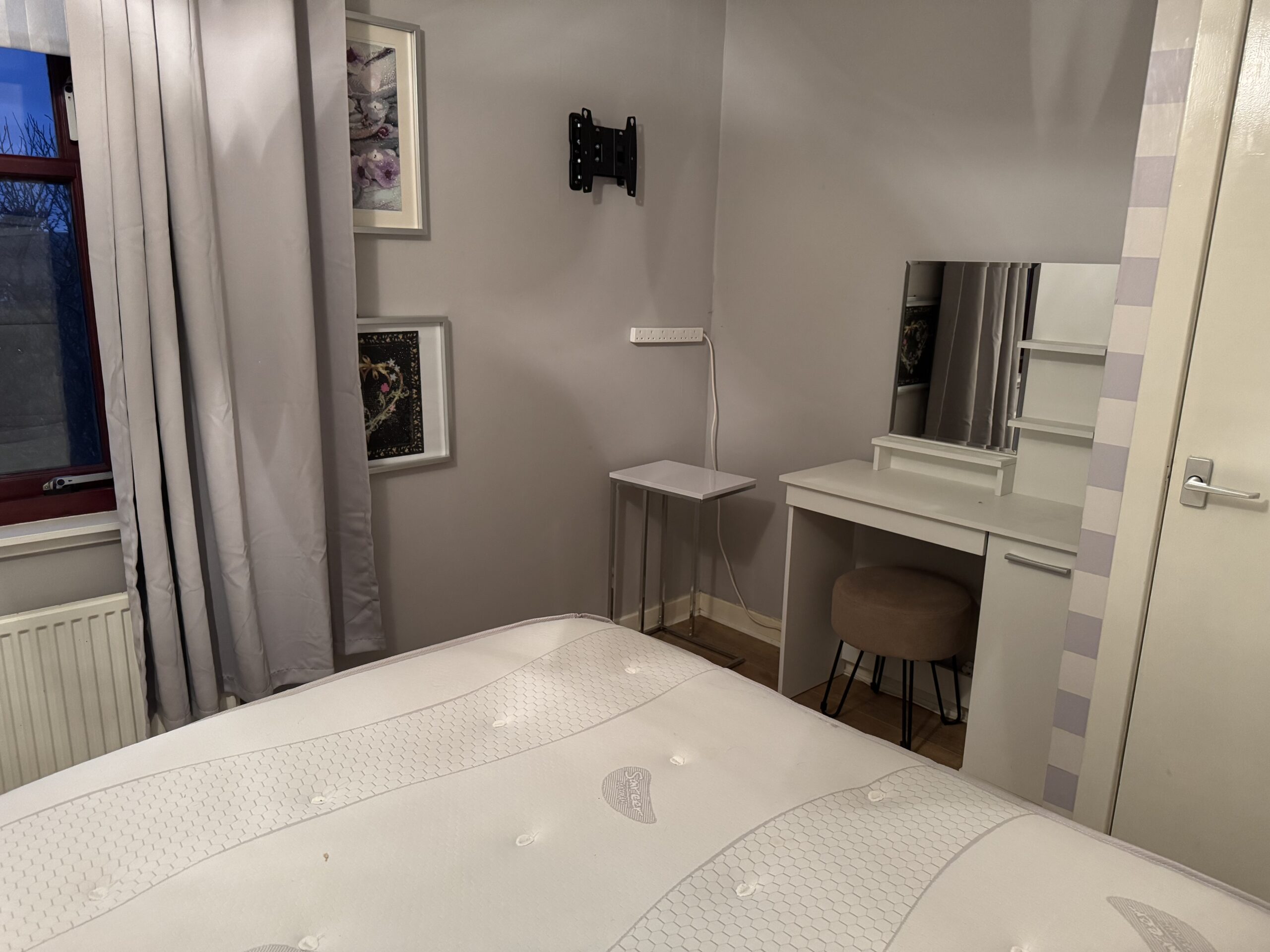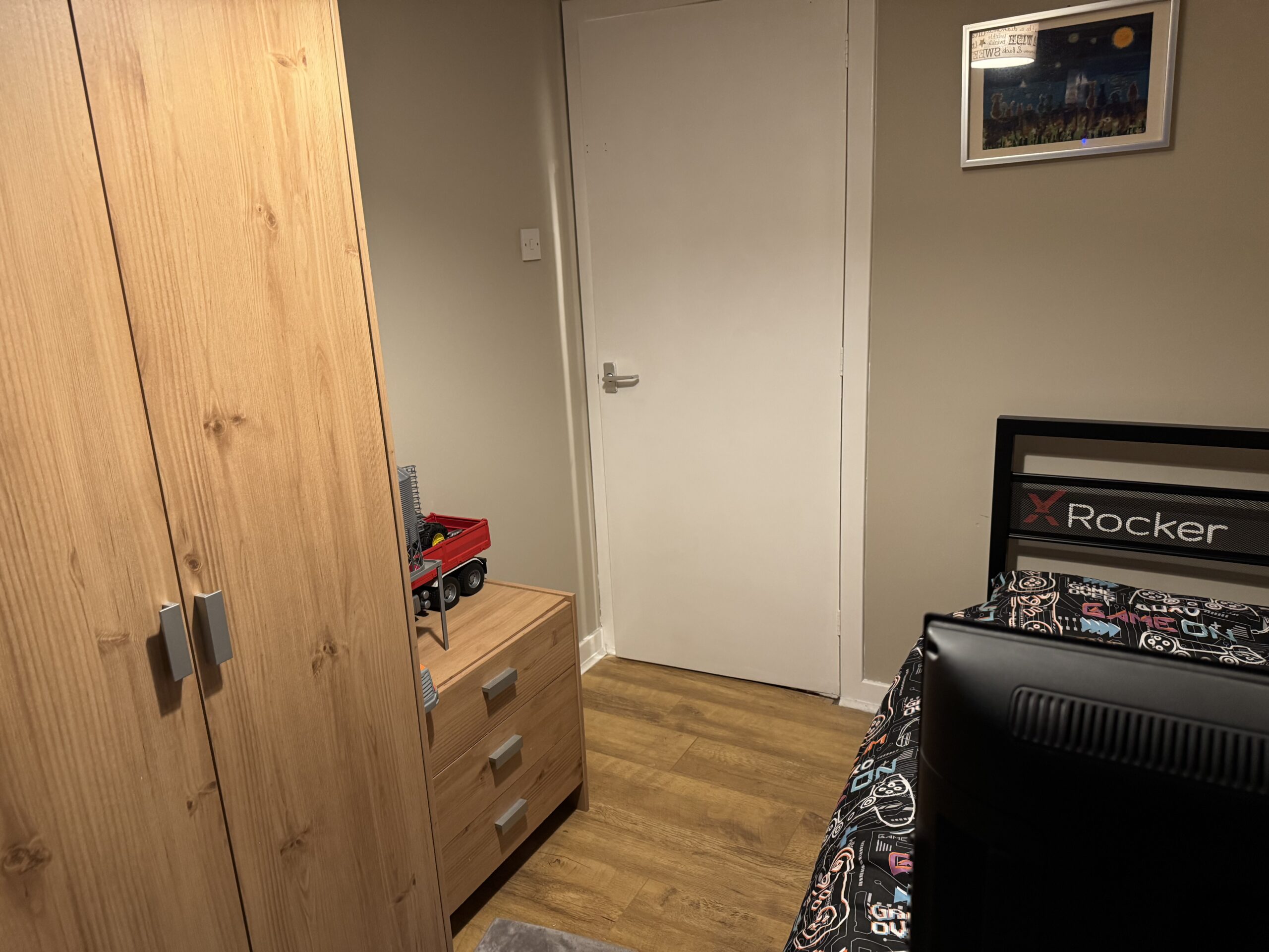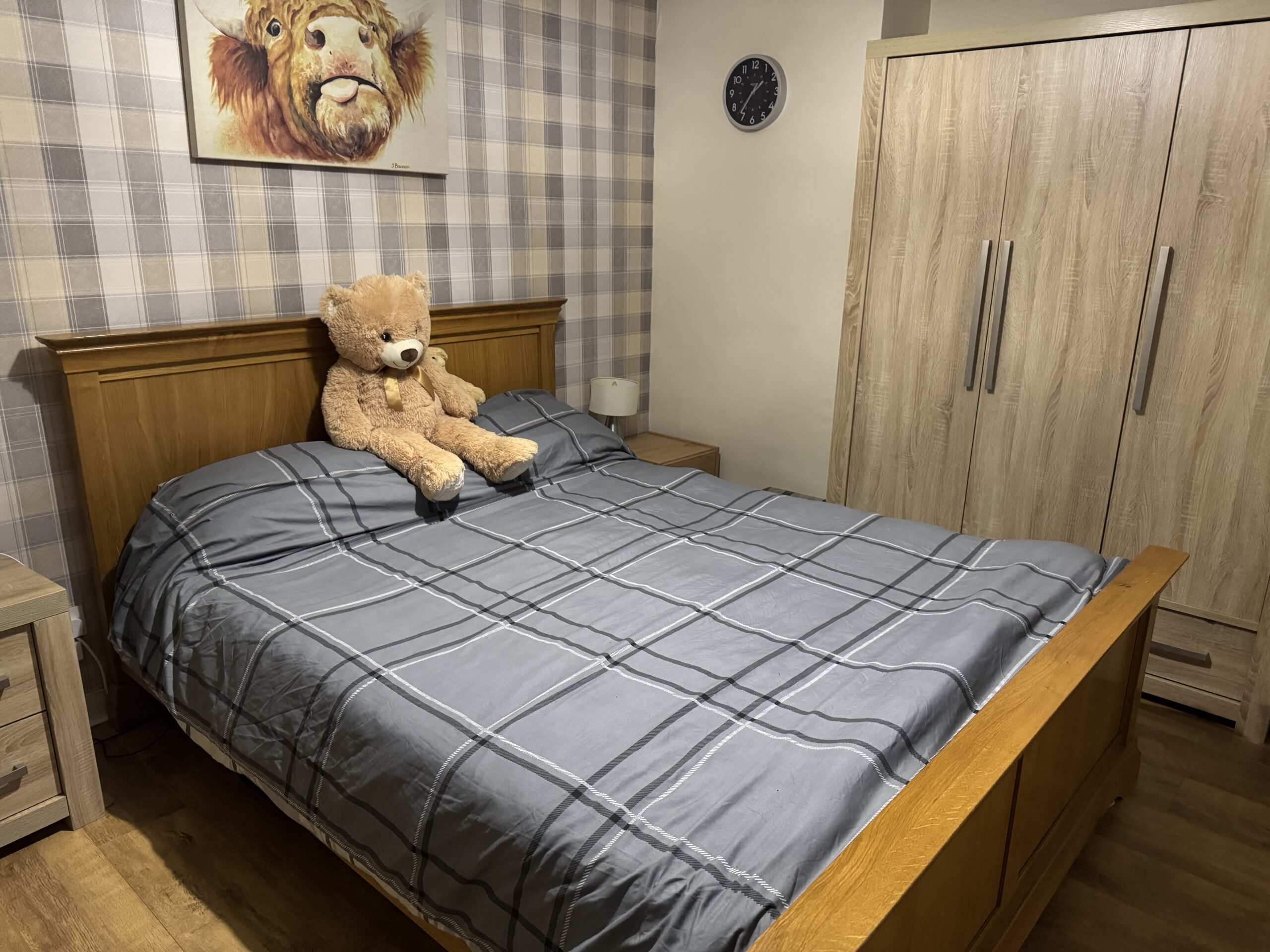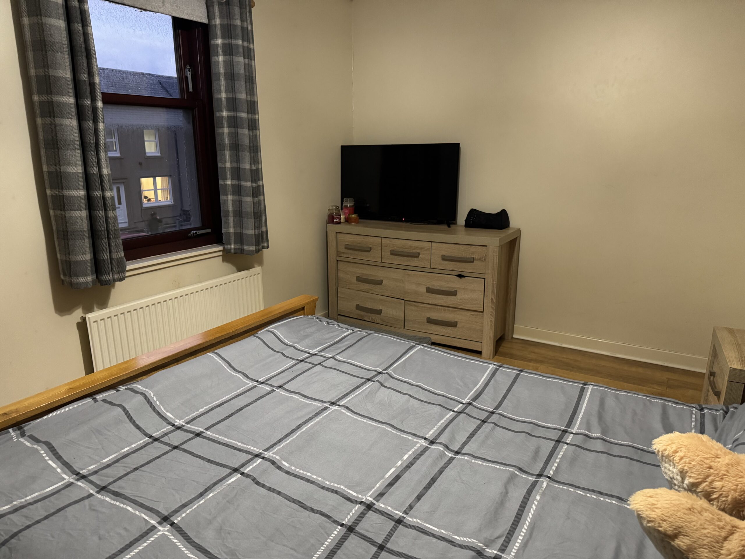 This lovely bright room has a built-in wardrobe and a built-in shelved cupboard which also houses the water tank. There is a radiator to the wall and the flooring is laid to laminate. A window faces to the rear.
