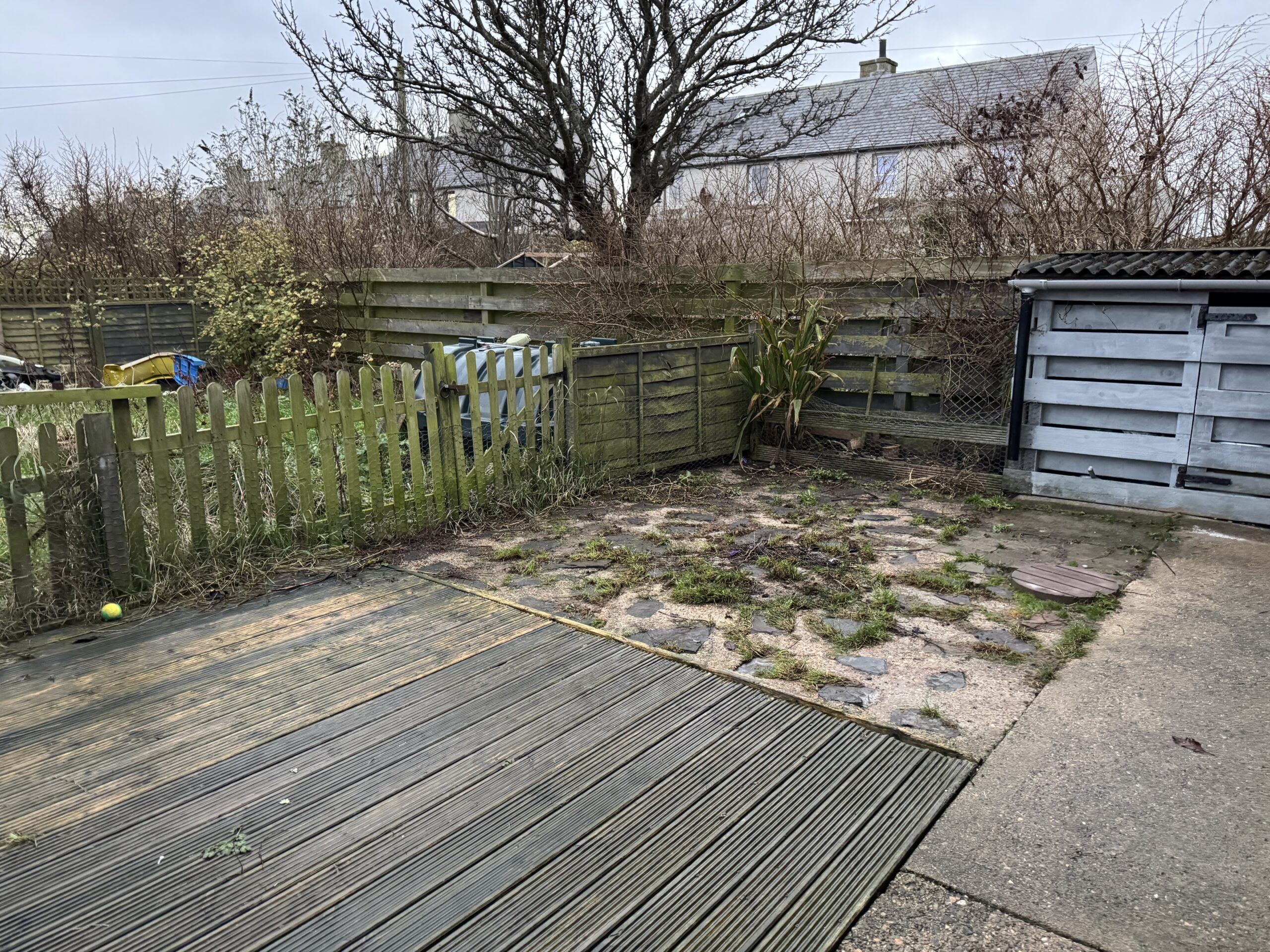 To the front there is offroad parking for two vehicles though a motorbike could also be accommodated in the available space. There is a side entrance into the rear garden which is also accessed from the rear vestibule. The fenced garden has a courtyard area laid to concrete and also has a timber patio area. There is an outside tap also in this area along with outside storage. A gate then leads into a fenced and lawned area which has a small shed.